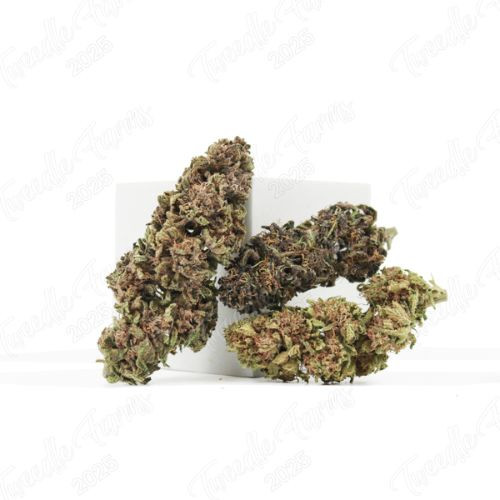 Shades of pale violet, peach, green, and white come together to give this flower an almost pinkish tinge, which is entirely fitting, given its name. The buds are long, spear-like, and appear to have been pulled from an ice cave, due to the thick crust of perfectly-ripened trichomes caked on every available surface.